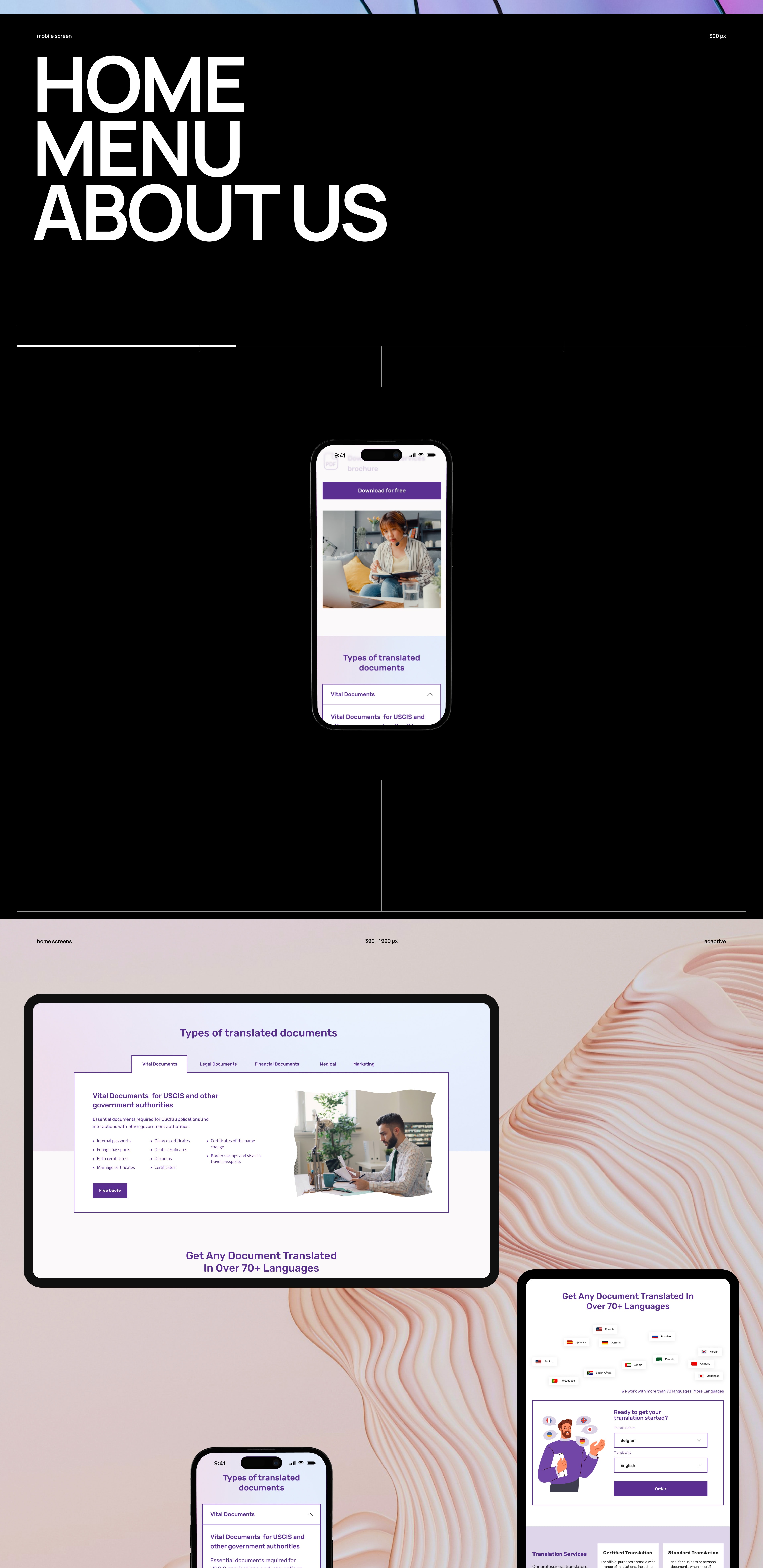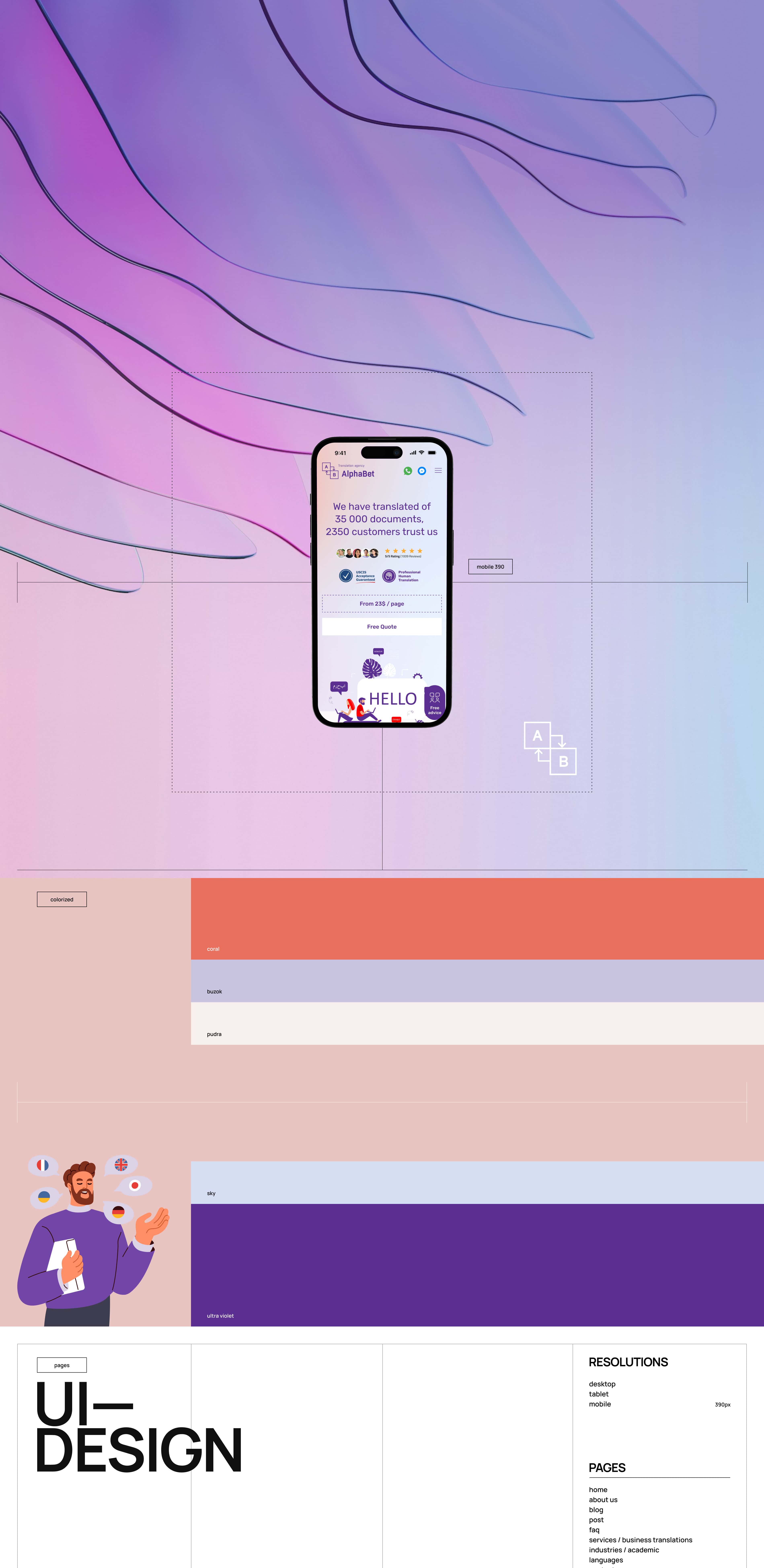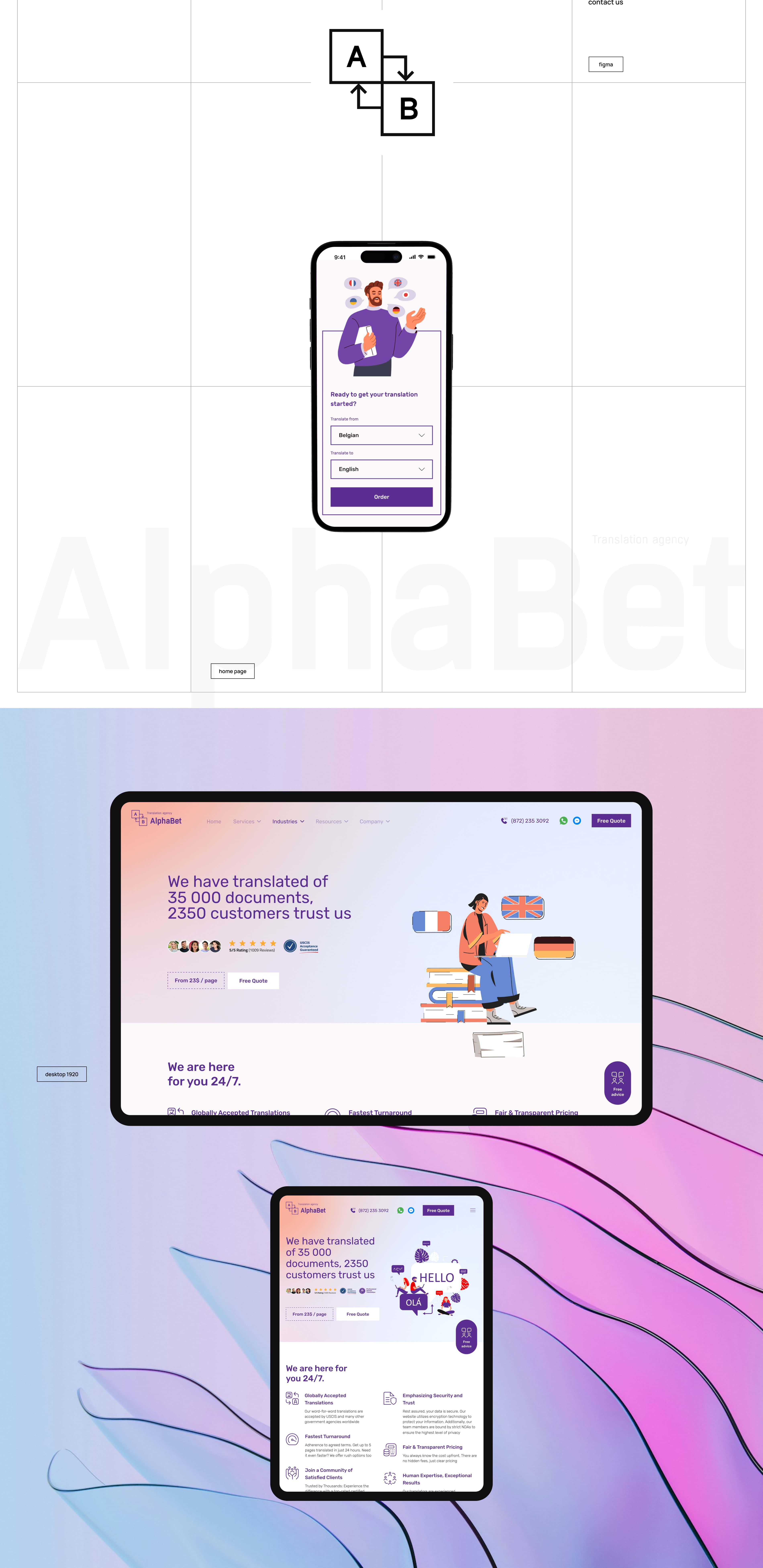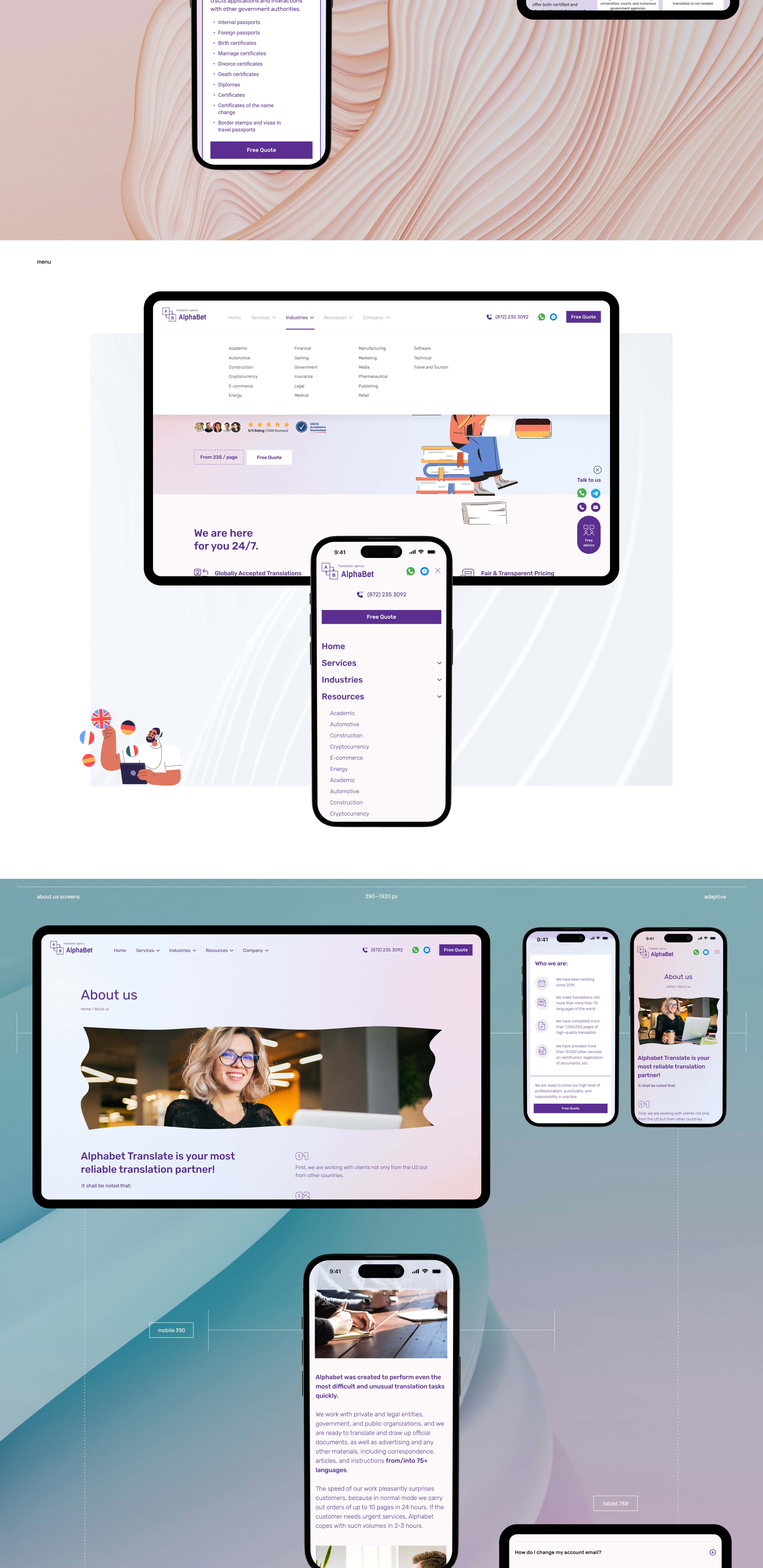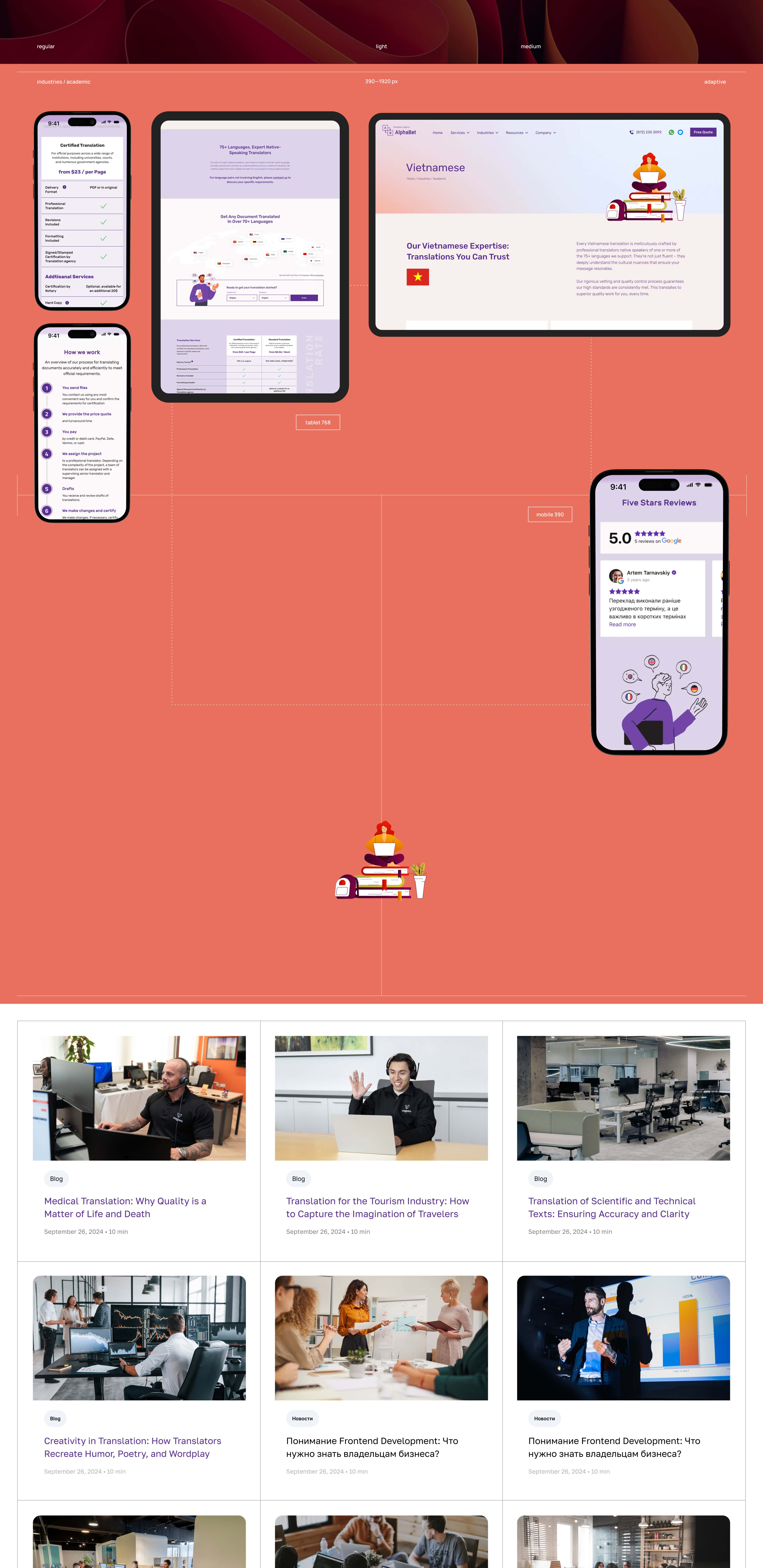 Ми створили сучасний UX/UI дизайн та розробили сайт для агенції перекладів Alphabet. Основний акцент зроблено на зрозумілу структуру, просту навігацію та професійну презентацію послуг у понад 70 мовах.