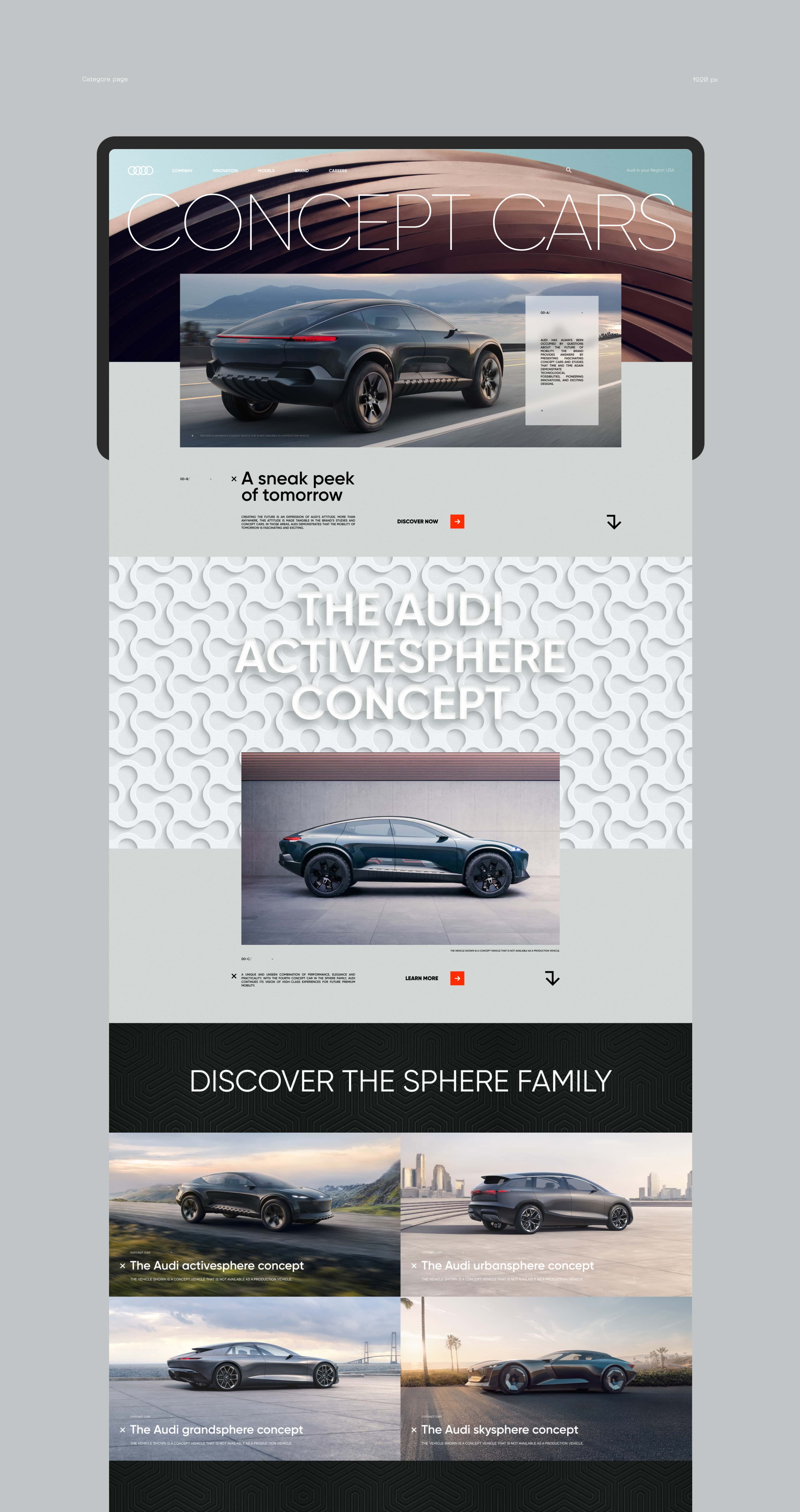 Concept web design, UI/UX for AUDI