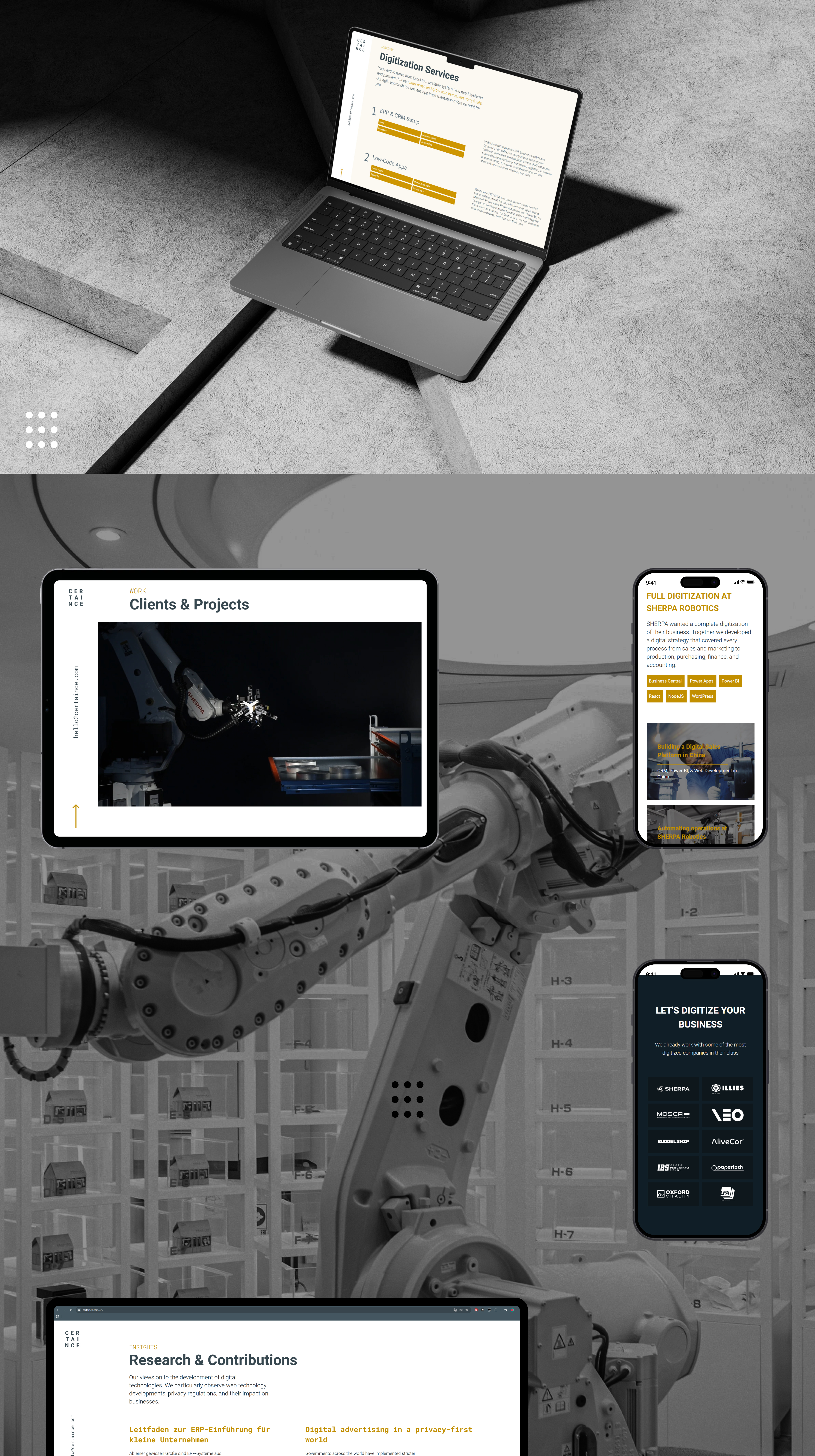 Ми створили сучасний сайт для Certaince — німецької компанії, що займається цифровізацією бізнесу. Сайт презентує їхні послуги у сфері ERP, CRM, low-code та веброзробки, поєднуючи технологічність і структурованість.