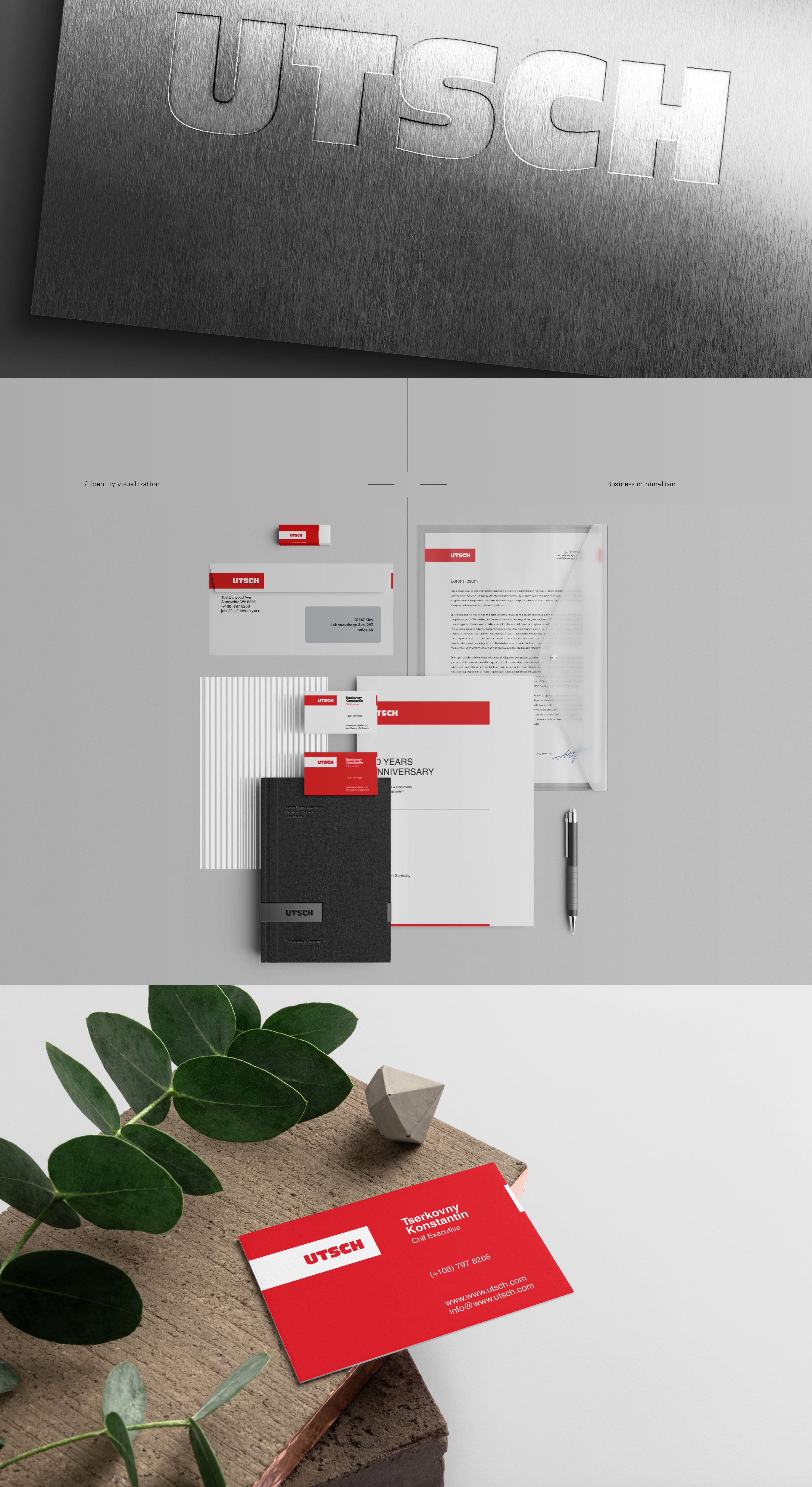 Ми розробили сучасний та цілісний корпоративний стиль для UTSCH: оновлення логотипу, кольорову гаму, типографіку, візуальні елементи та брендбук, щоб підкреслити технологічність і надійність бренду.