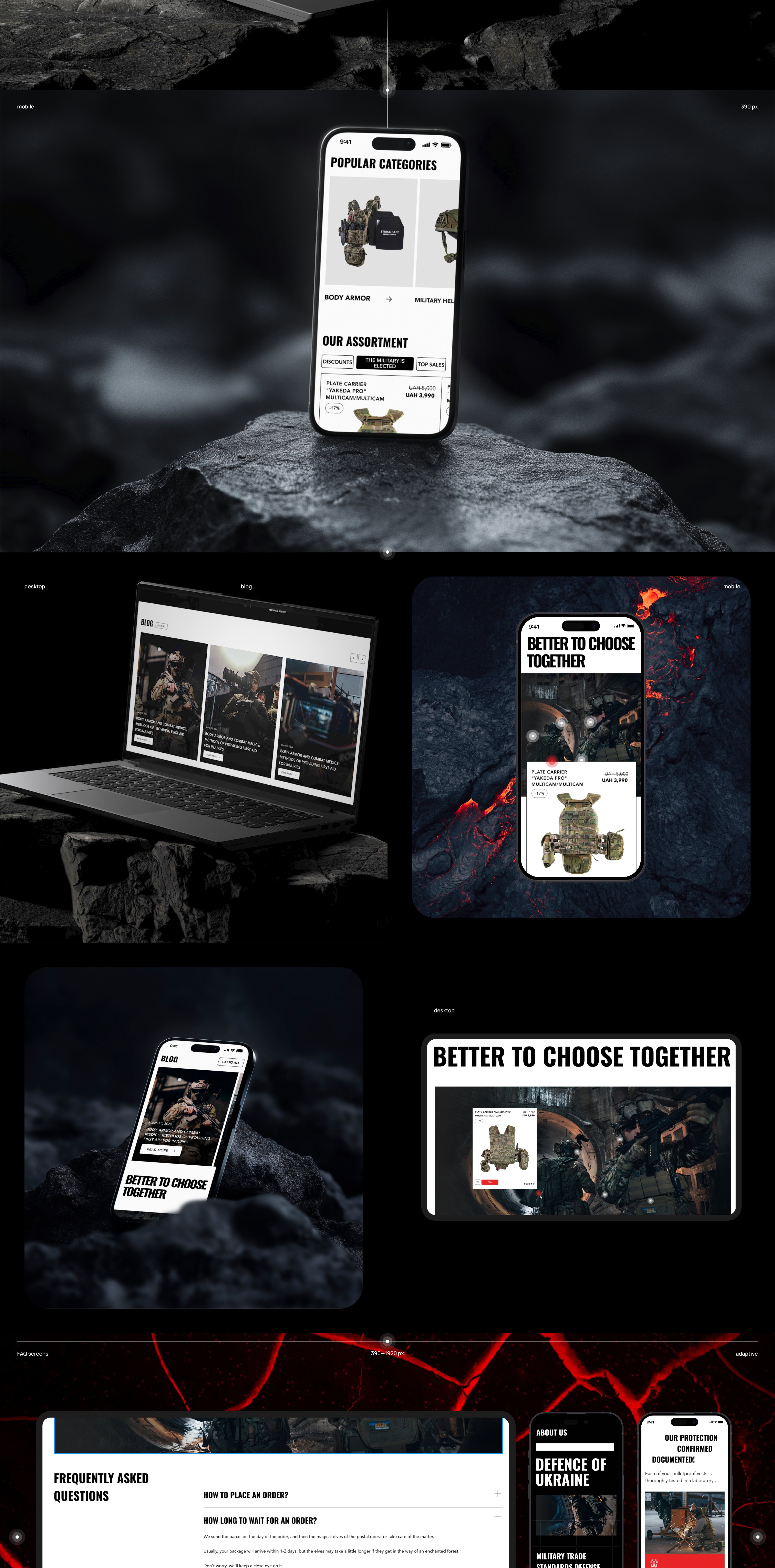 Ми створили сучасний UX/UI дизайн інтернет-магазину для Defence Ukraine — магазину тактичного спорядження, бронезахисту та екіпіровки. Дизайн орієнтований на зрозумілу навігацію, швидкий доступ до категорій та зручність замовлення.