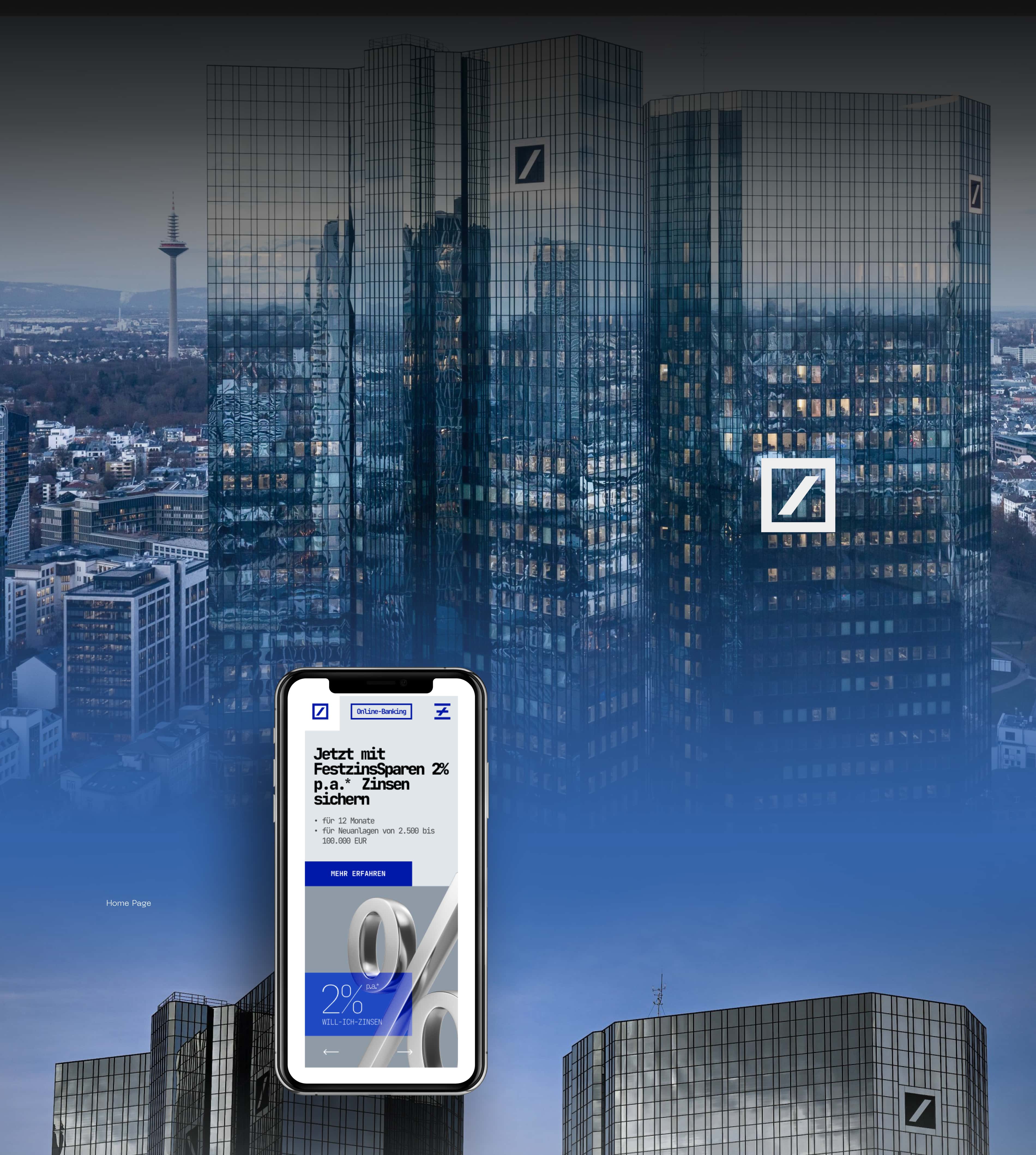 Design concept for the website of Deutsche Bank, a leading bank in Germany. The visual concept of content presentation was rethought. Business expensive style is made in white, gray tones, with bright corporate blue accents