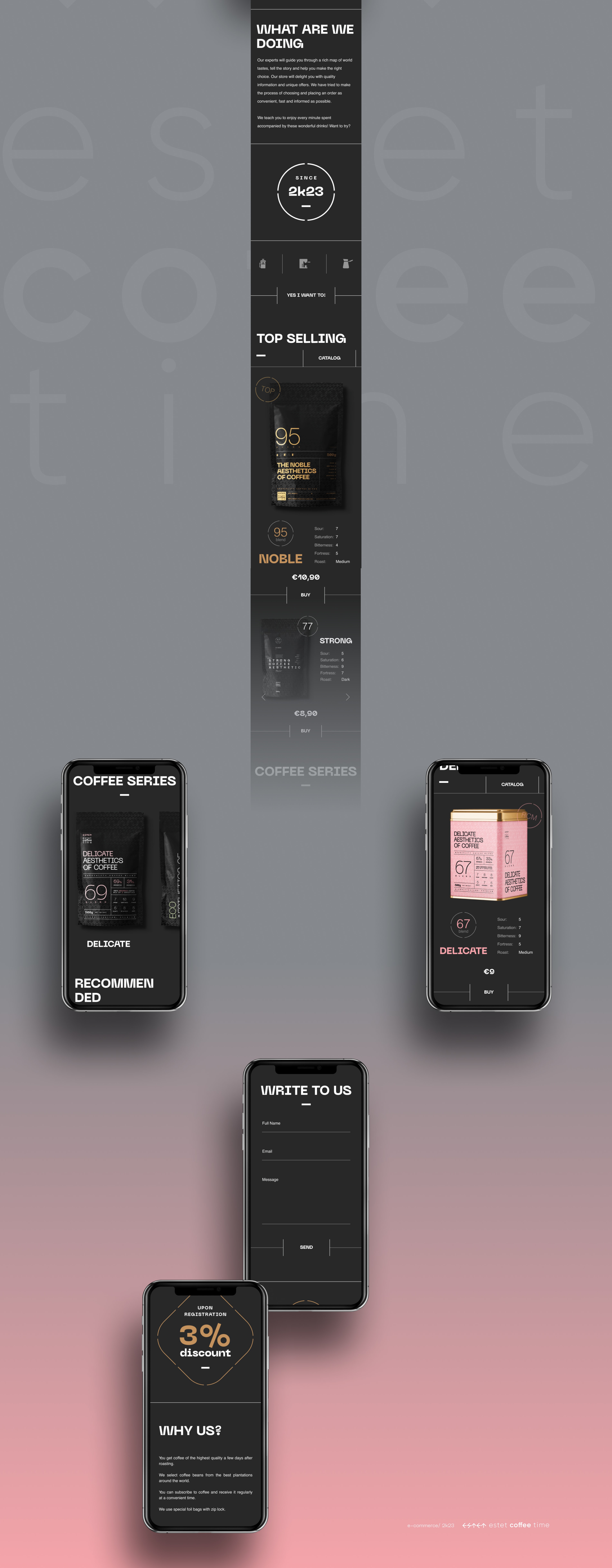 Ми раді представити нашу інноваційну концепцію фірмового стилю та дизайну сайту для Estet Coffee Time. Наш підхід до цього проекту полягав у створенні дизайну, що втілює вишуканість та сучасність, відображаючи суть бренду. Ми неймовірно пишаємося результатами і раді представити цей проект у нашому портфоліо.