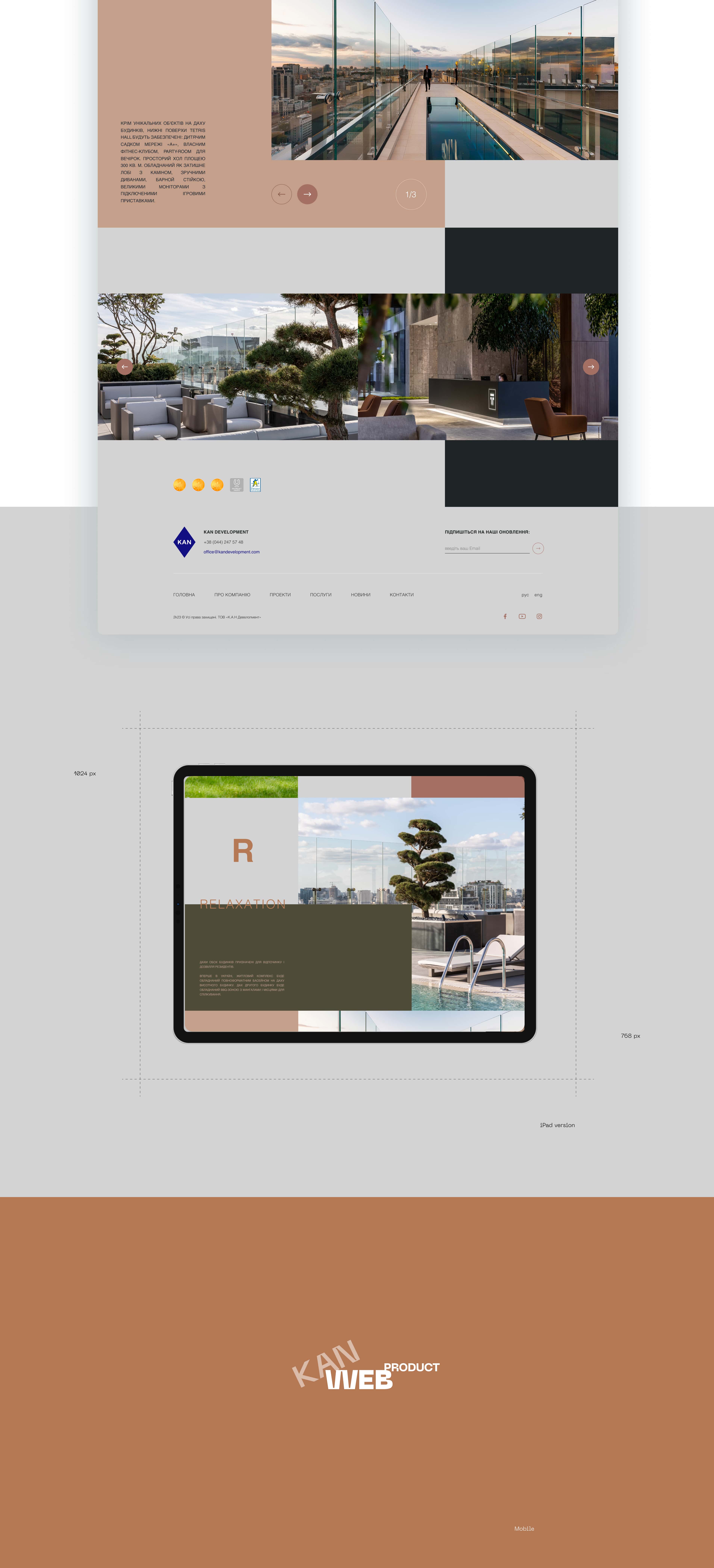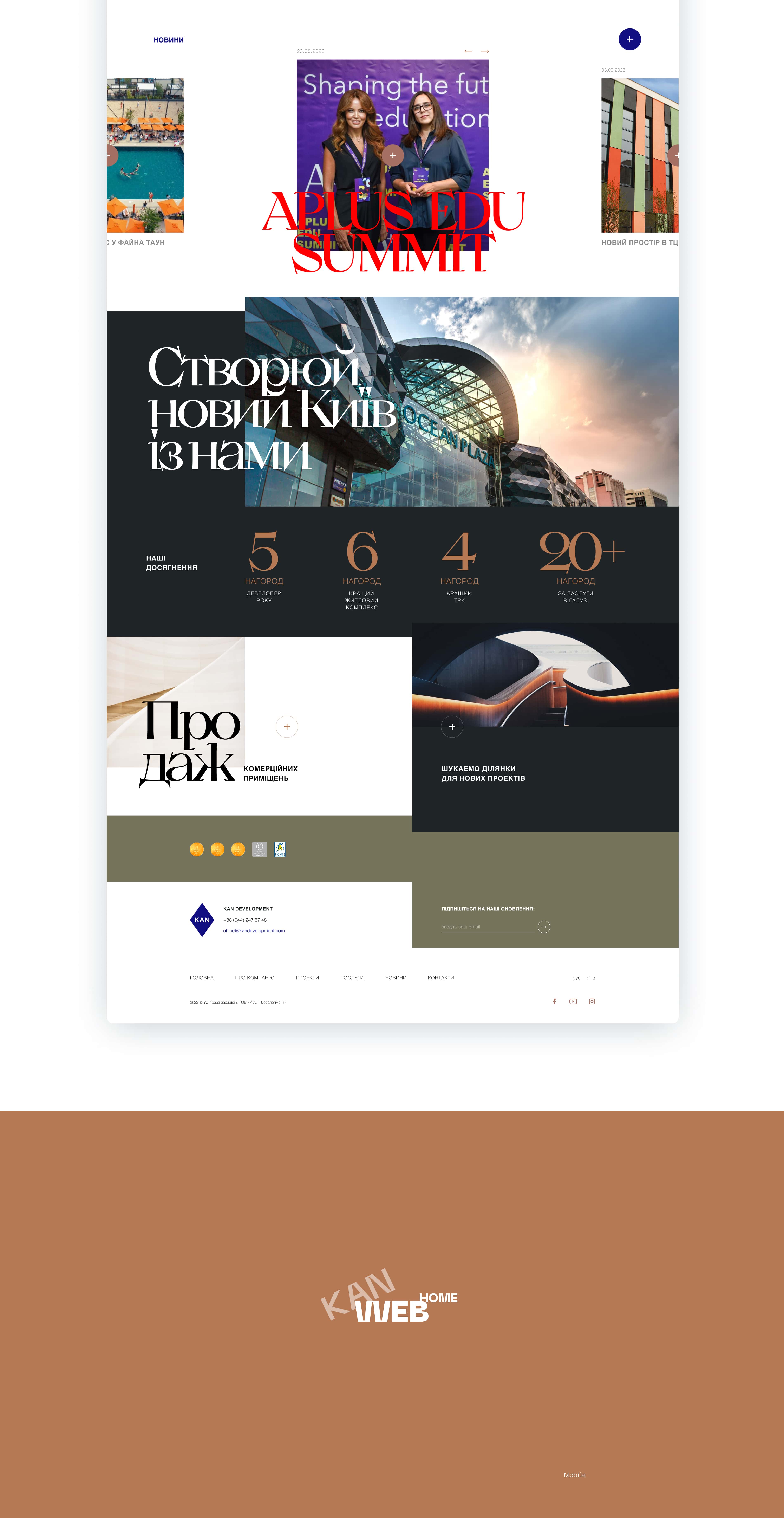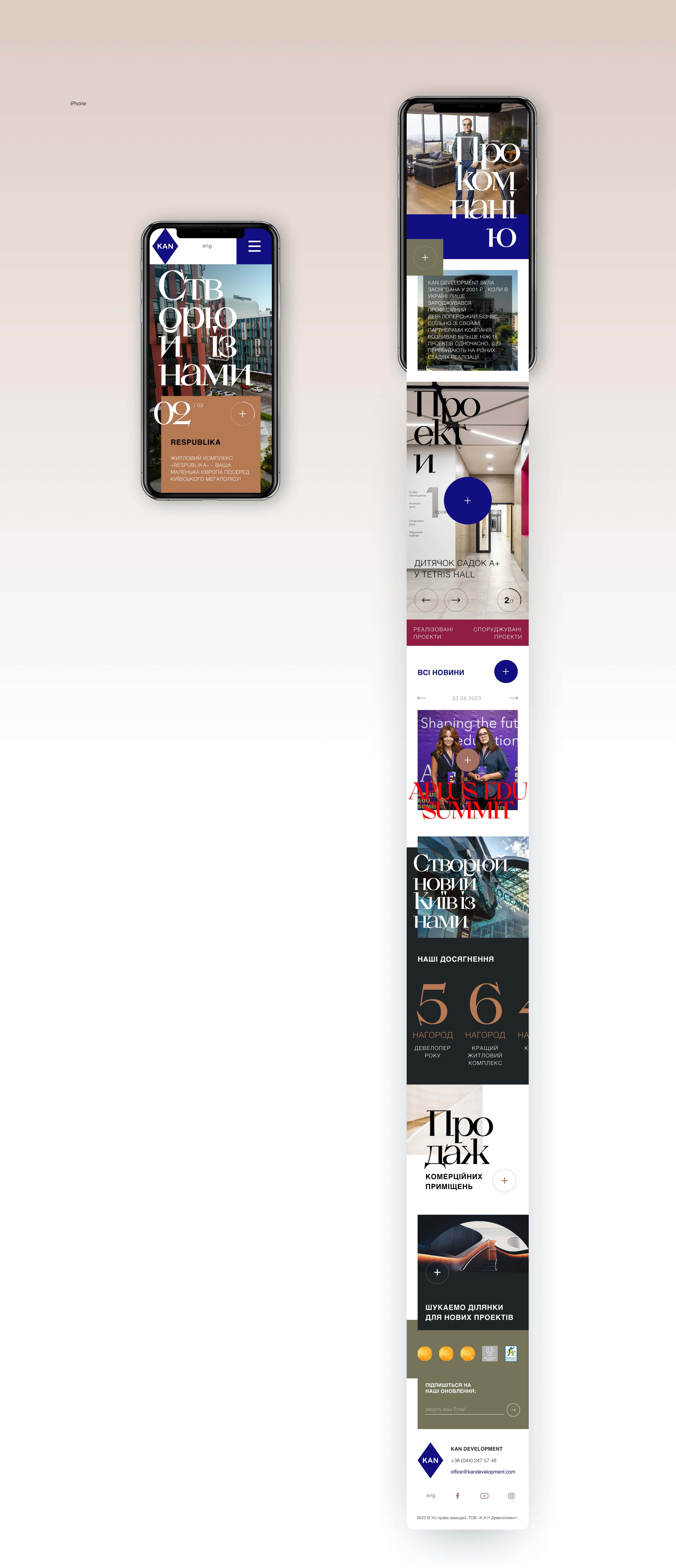 Ми розробили передову концепцію дизайну для сайту KAN Development. Наш ультрасучасний підхід забезпечує витончений та інтуїтивно зрозумілий користувацький досвід. Спеціалізуючись на будівництві сучасних житлових комплексів, KAN Development встановлює нові стандарти в галузі.