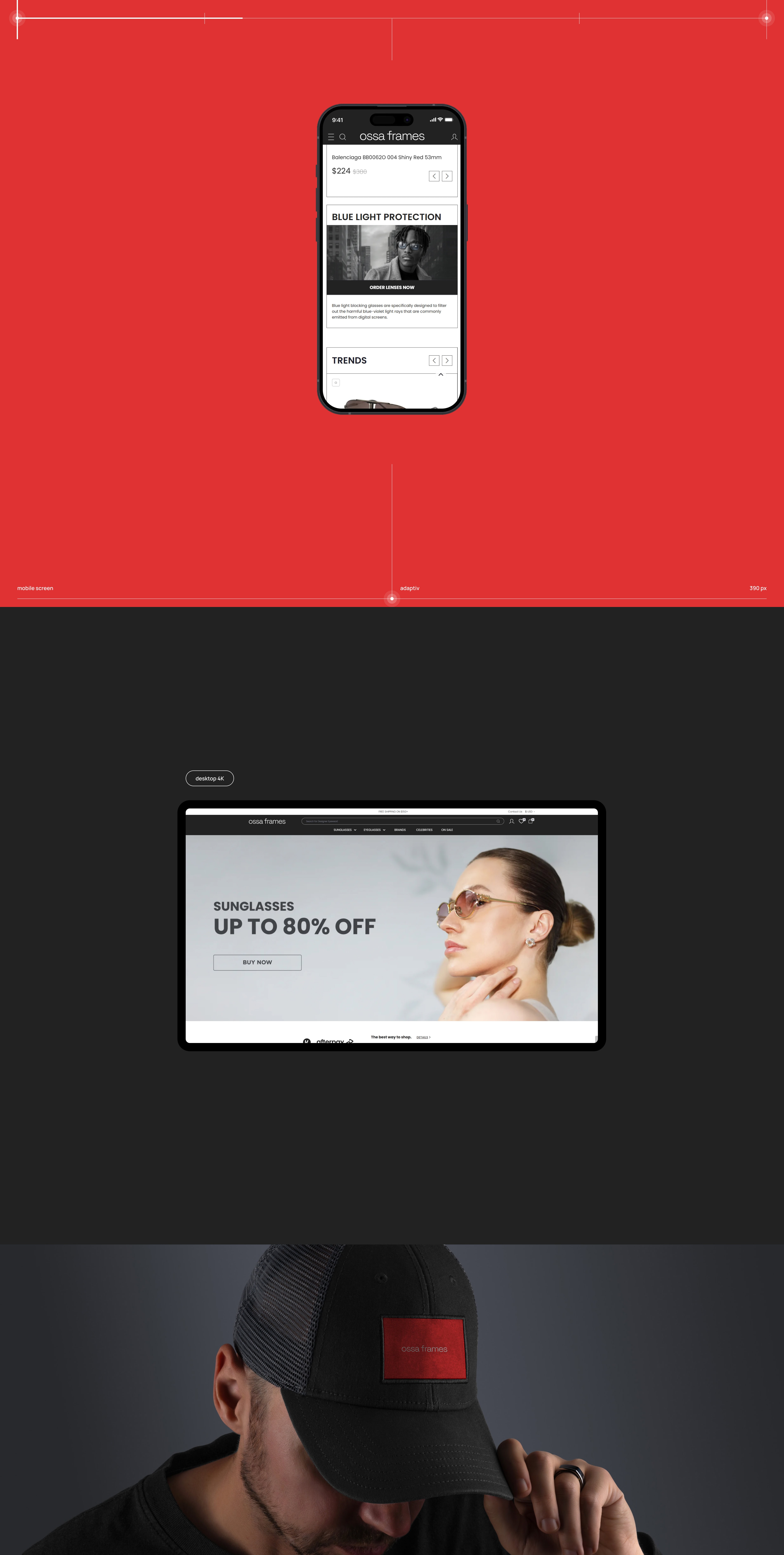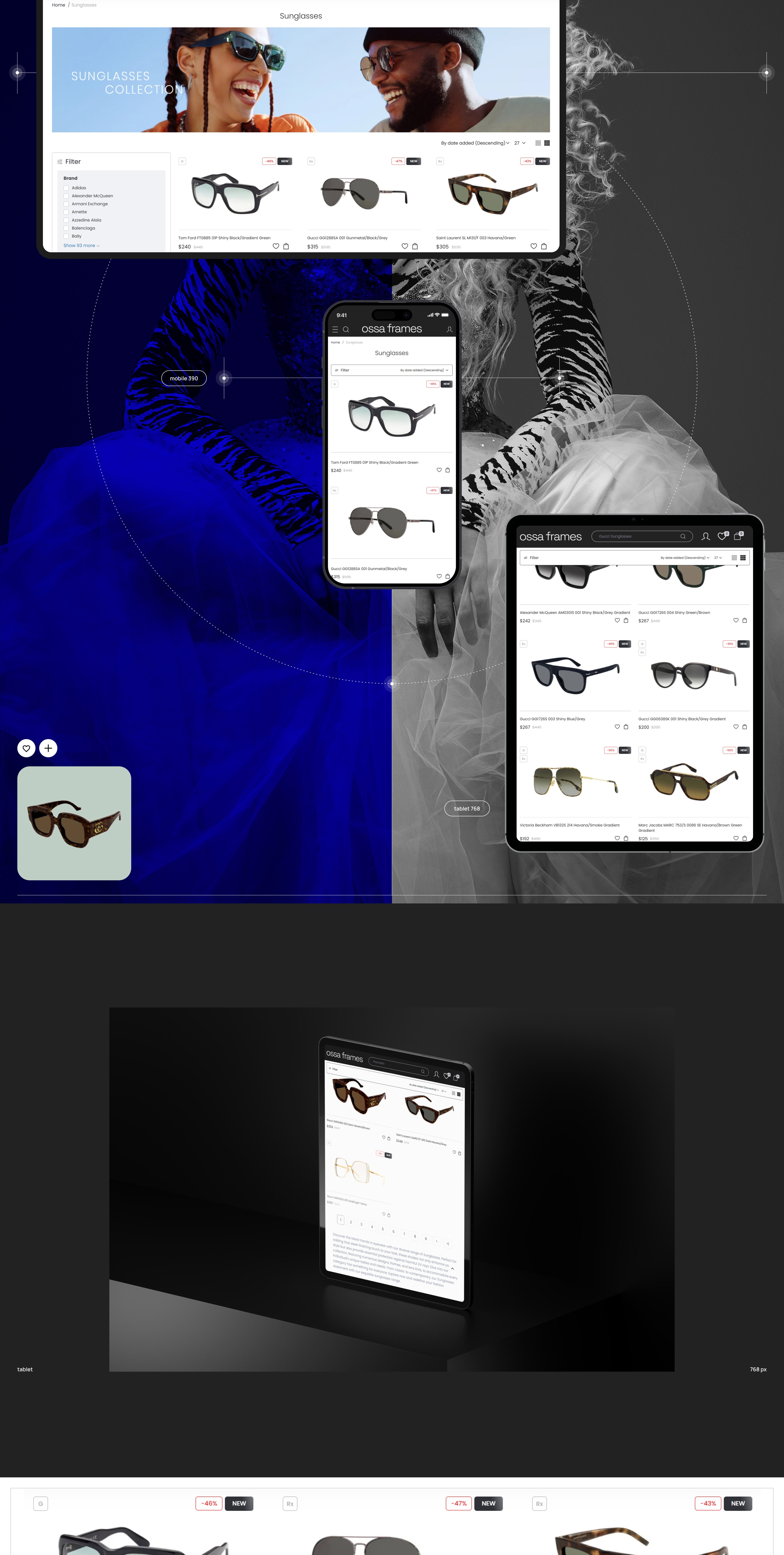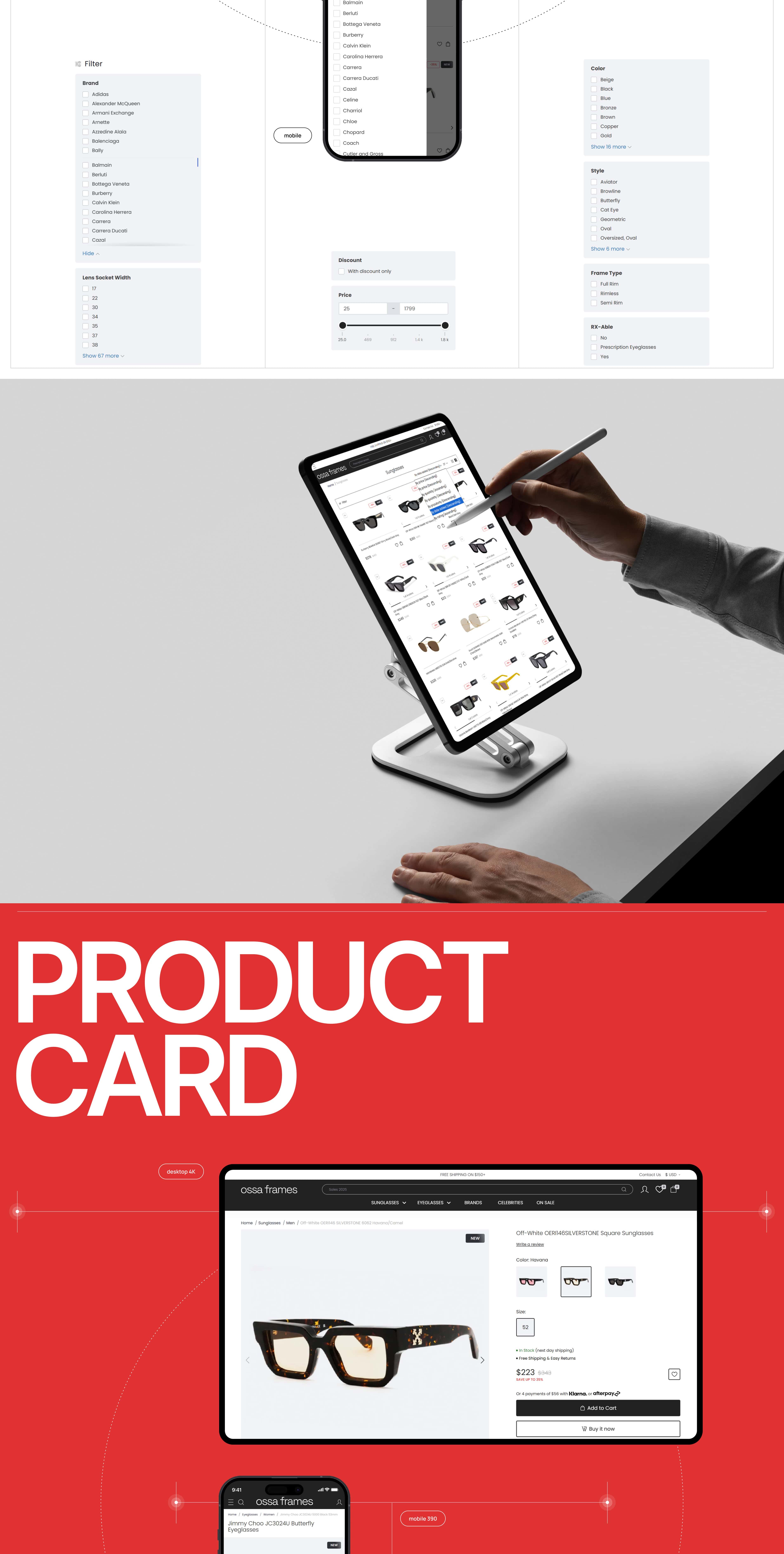 Ми розробили сучасний UX/UI дизайн для інтернет-магазину Ossa Frames — бренду, що спеціалізується на продажу окулярів та оправ. Дизайн поєднує естетику мінімалізму, преміальну візуальну подачу та інтуїтивну структуру каталогу.