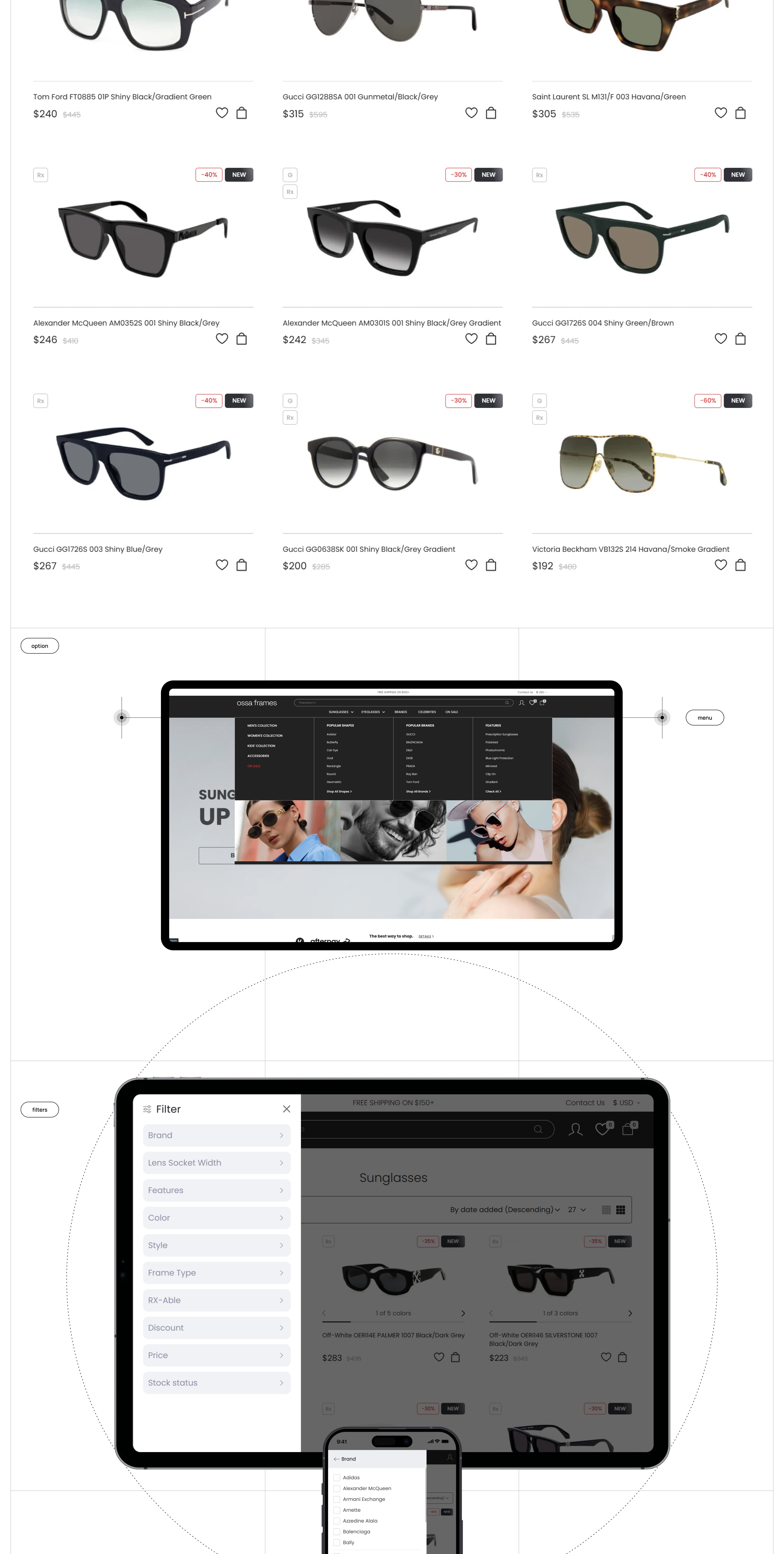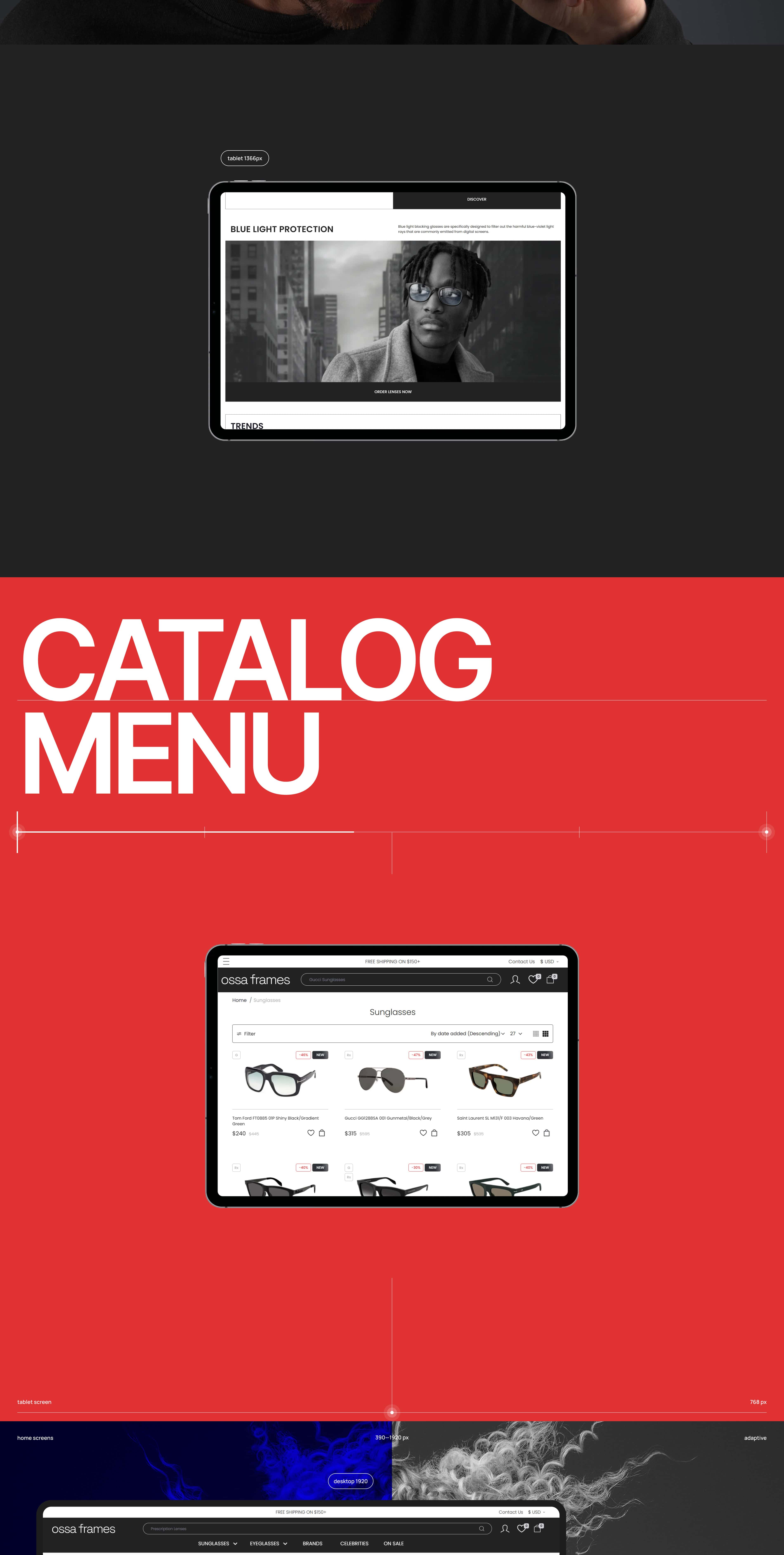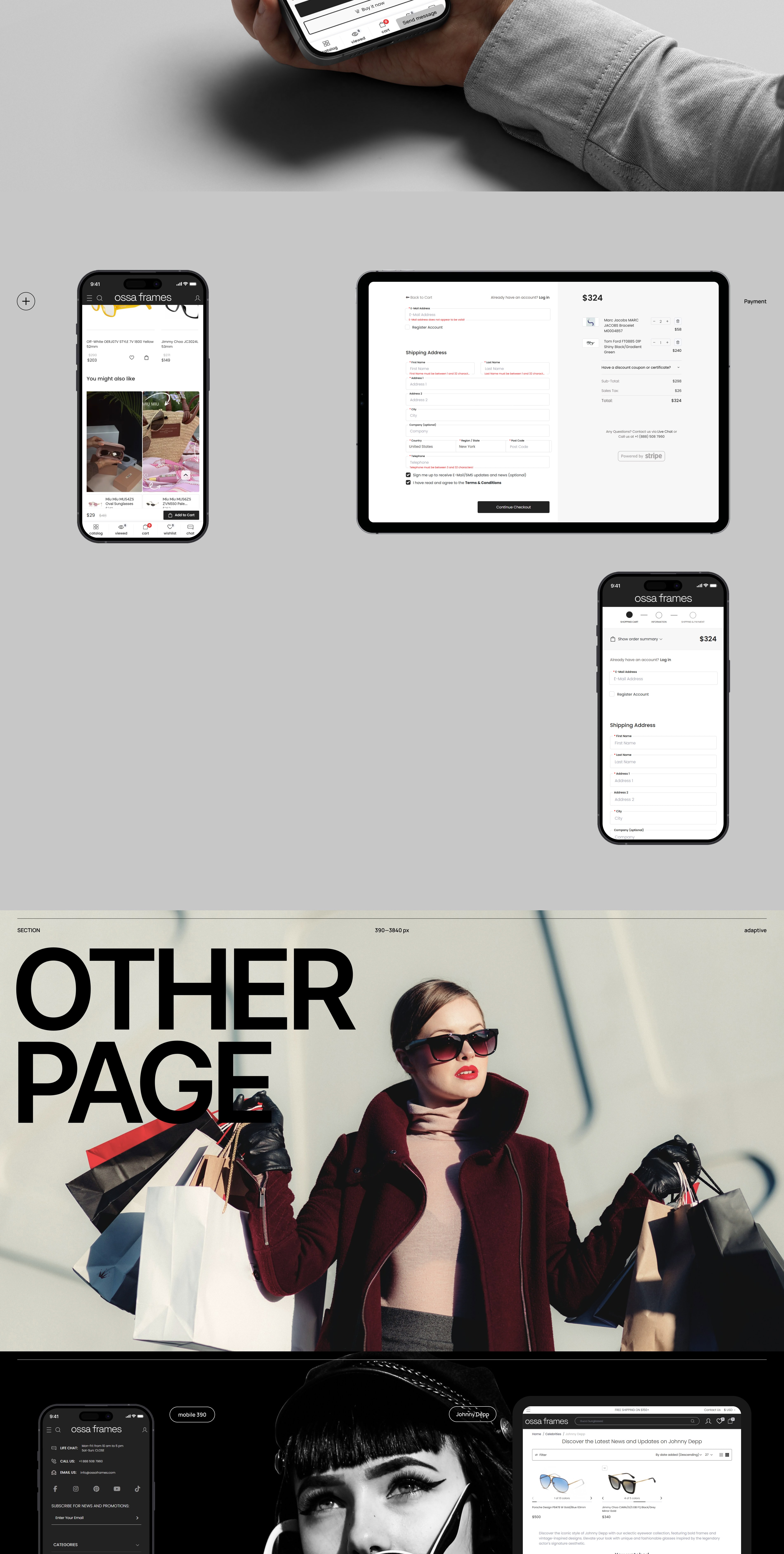 Ми розробили сучасний UX/UI дизайн для інтернет-магазину Ossa Frames — бренду, що спеціалізується на продажу окулярів та оправ. Дизайн поєднує естетику мінімалізму, преміальну візуальну подачу та інтуїтивну структуру каталогу.