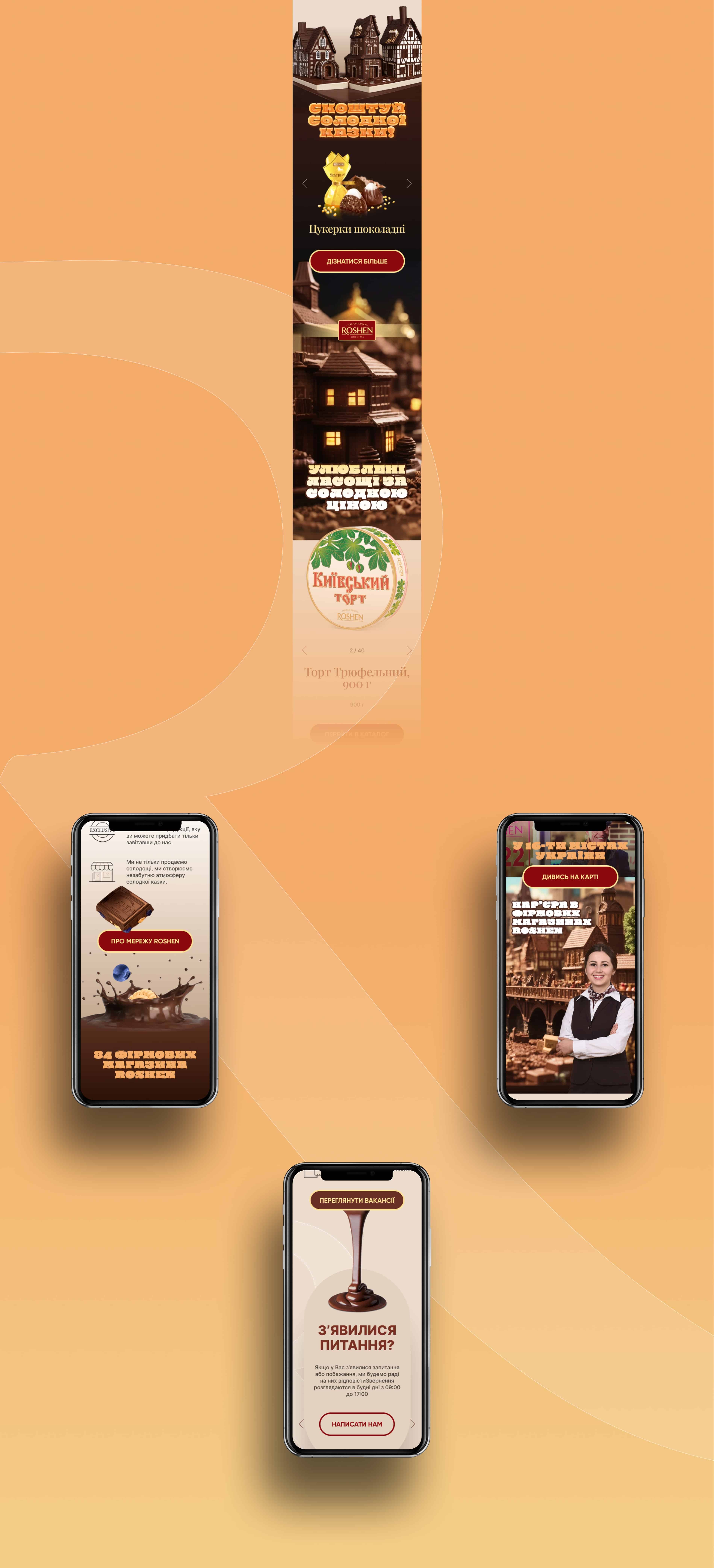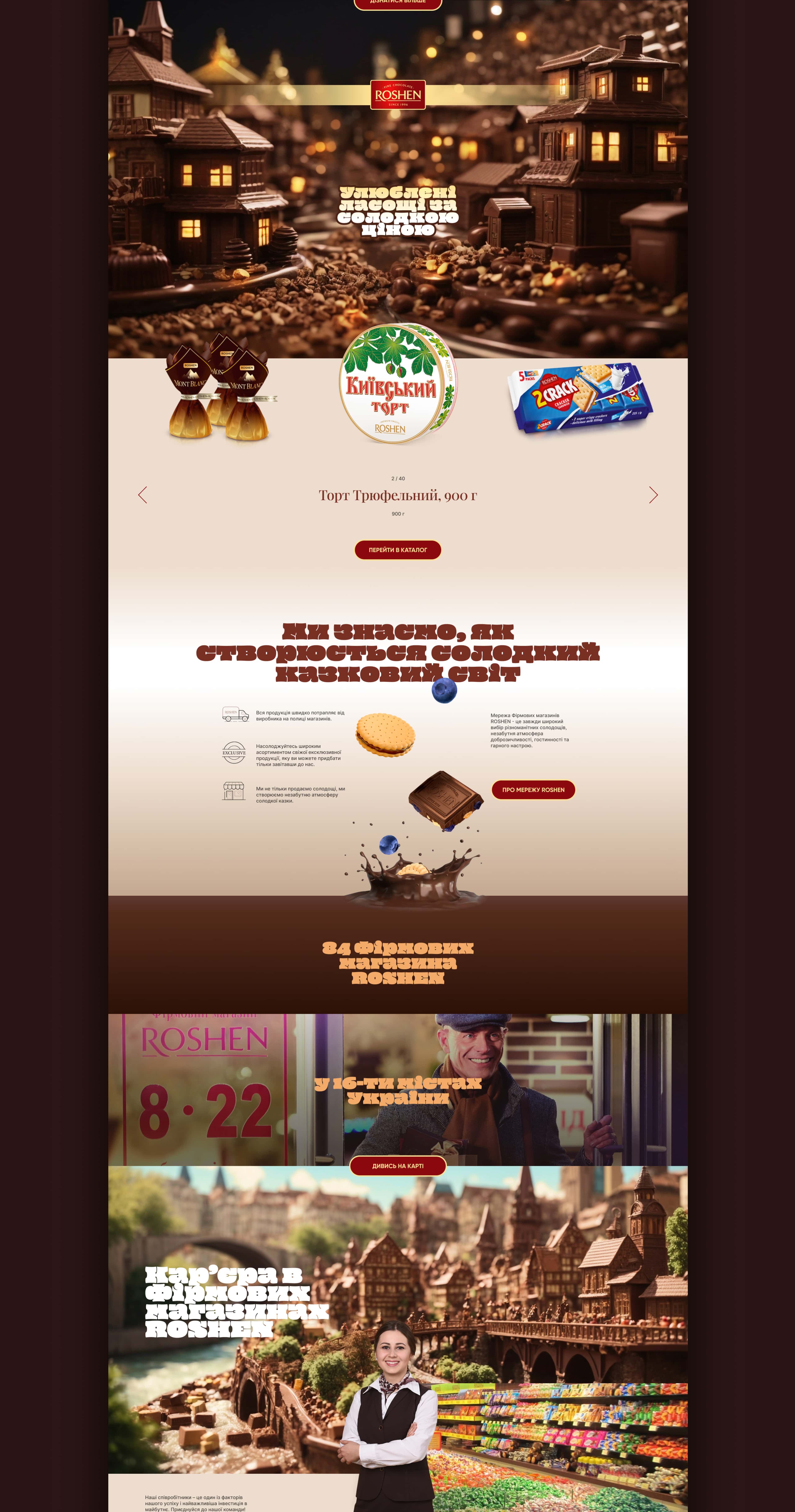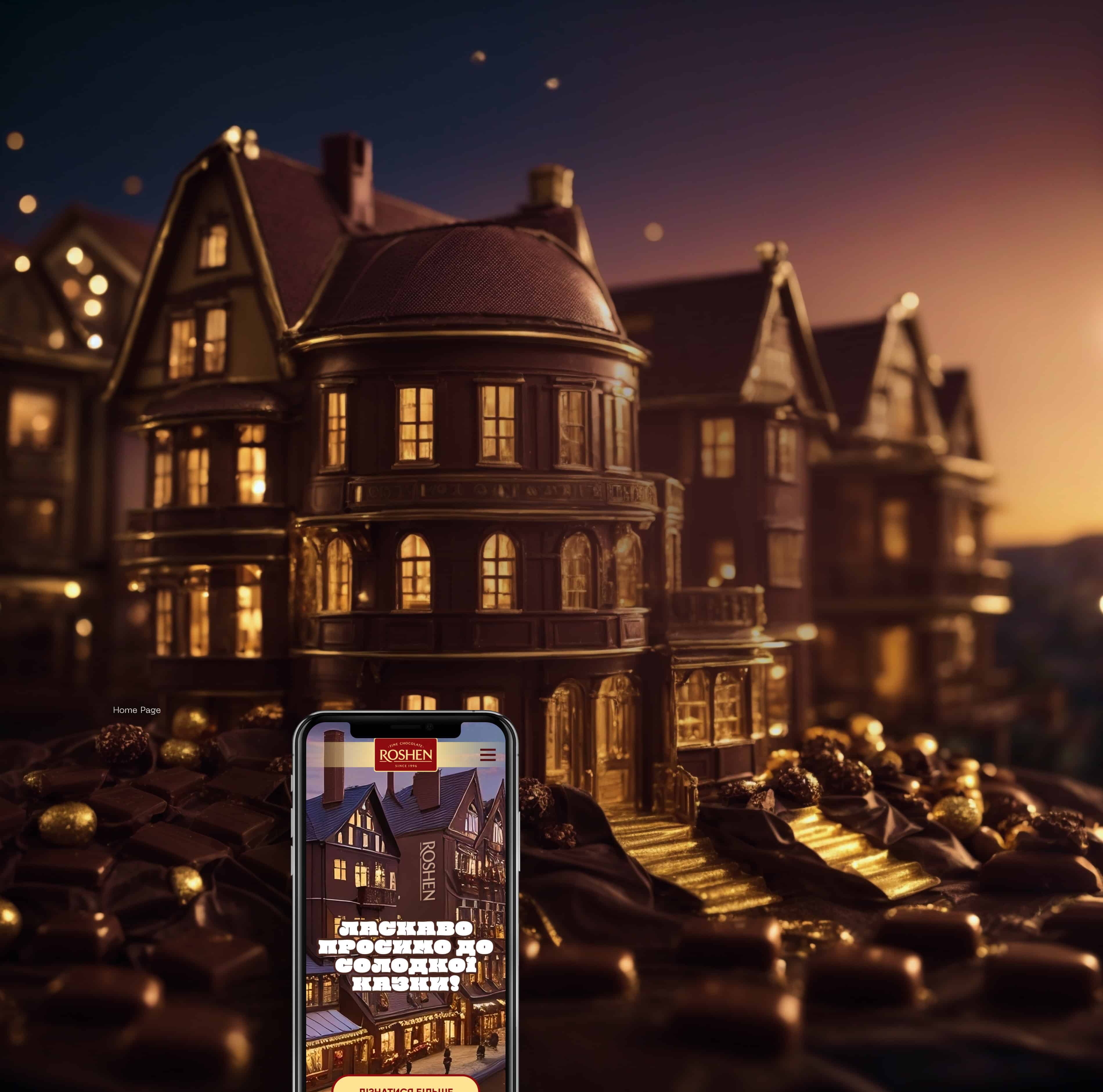 Ми розробили передову концепцію дизайну для сайту Roshen. Наш сайт витончений та інноваційний, що відображає наше прагнення до сучасності. Ласкаво просимо до Roshen, де солодкість зустрічається з вишуканістю.