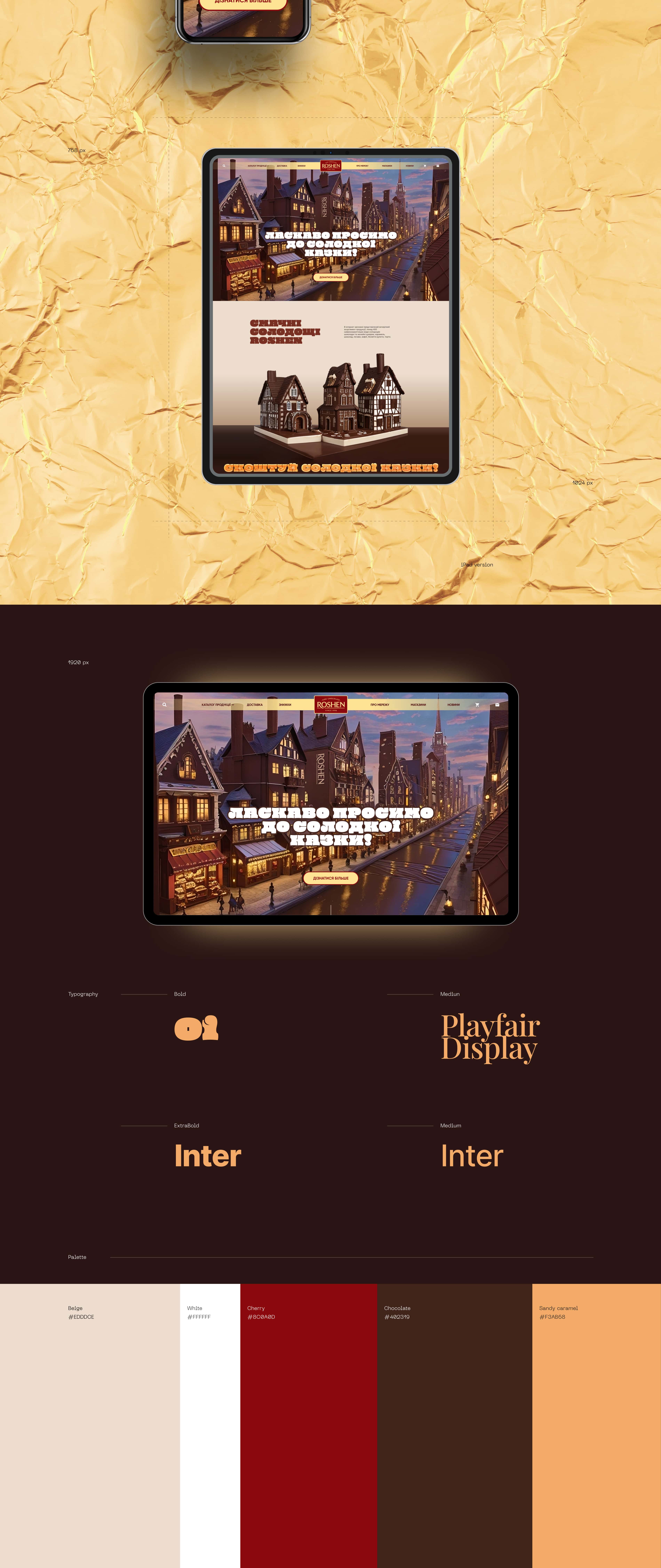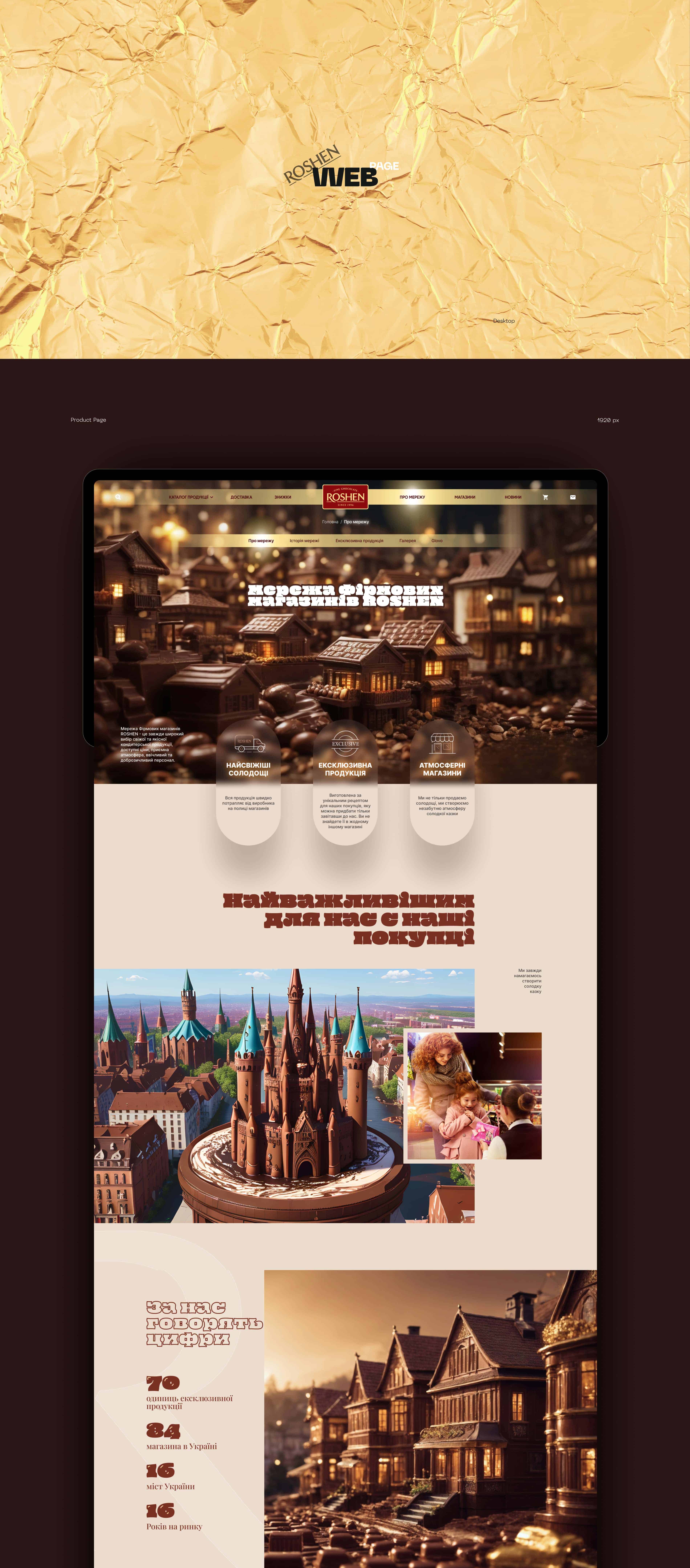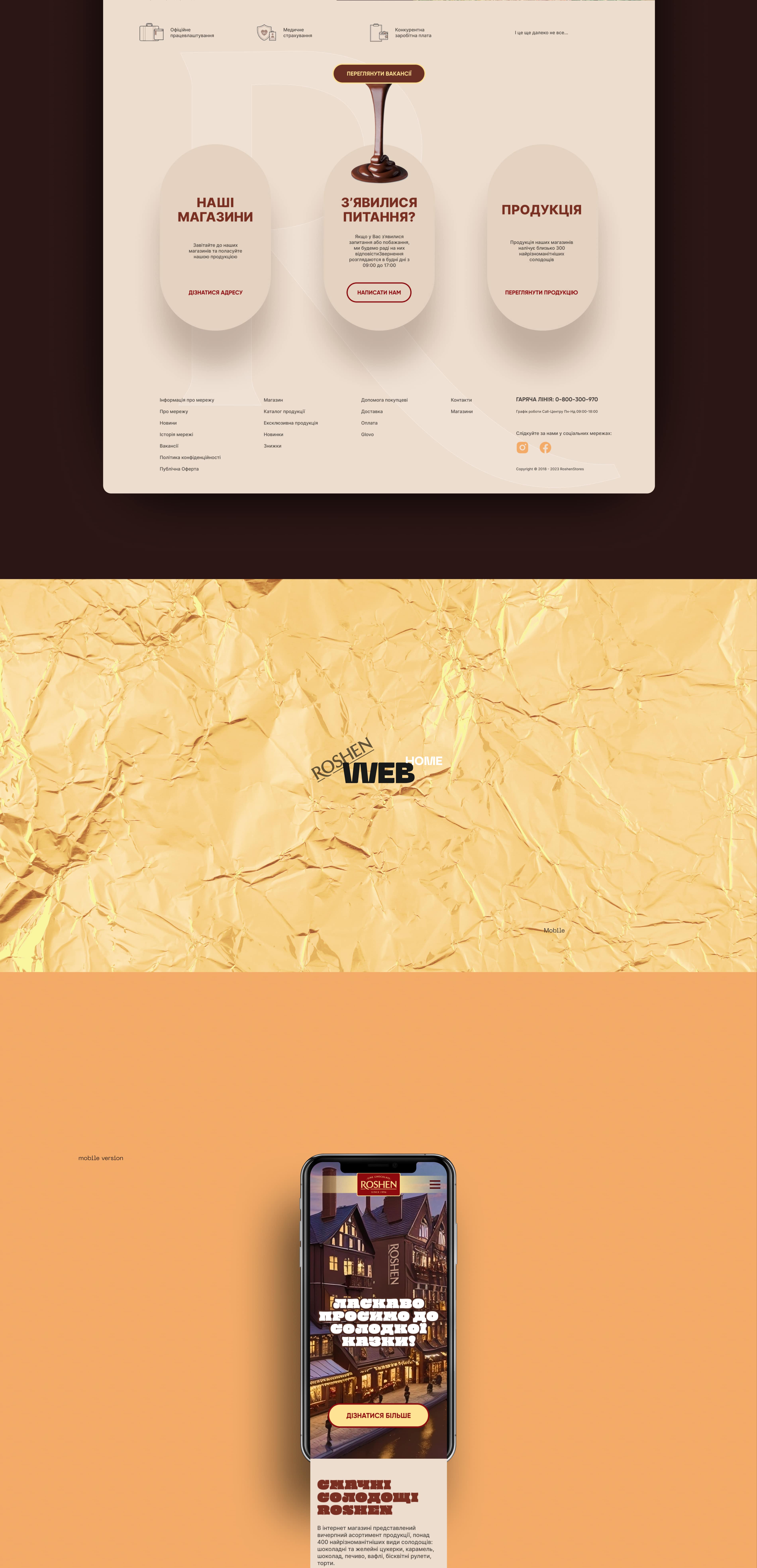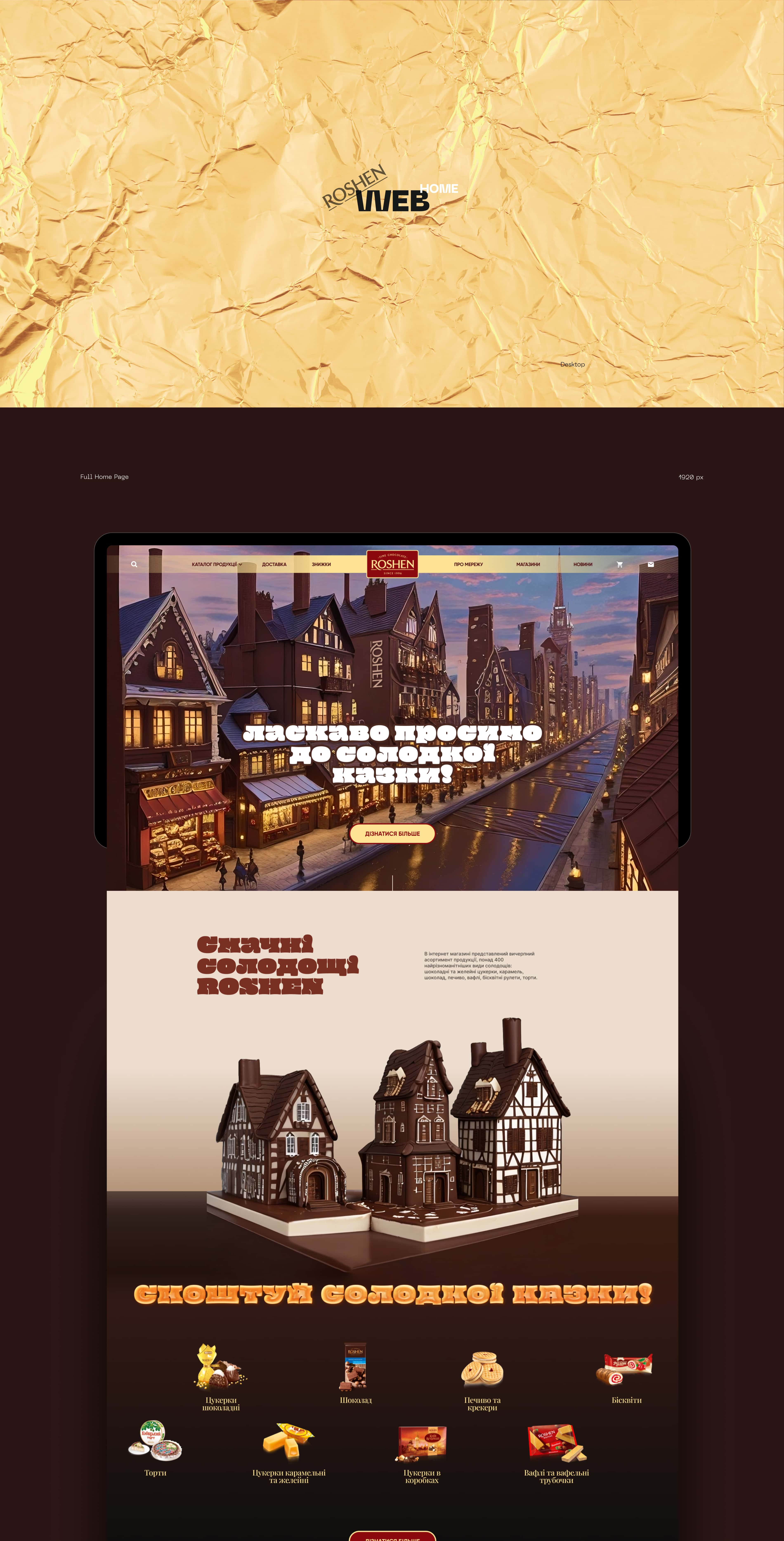 Ми розробили передову концепцію дизайну для сайту Roshen. Наш сайт витончений та інноваційний, що відображає наше прагнення до сучасності. Ласкаво просимо до Roshen, де солодкість зустрічається з вишуканістю.