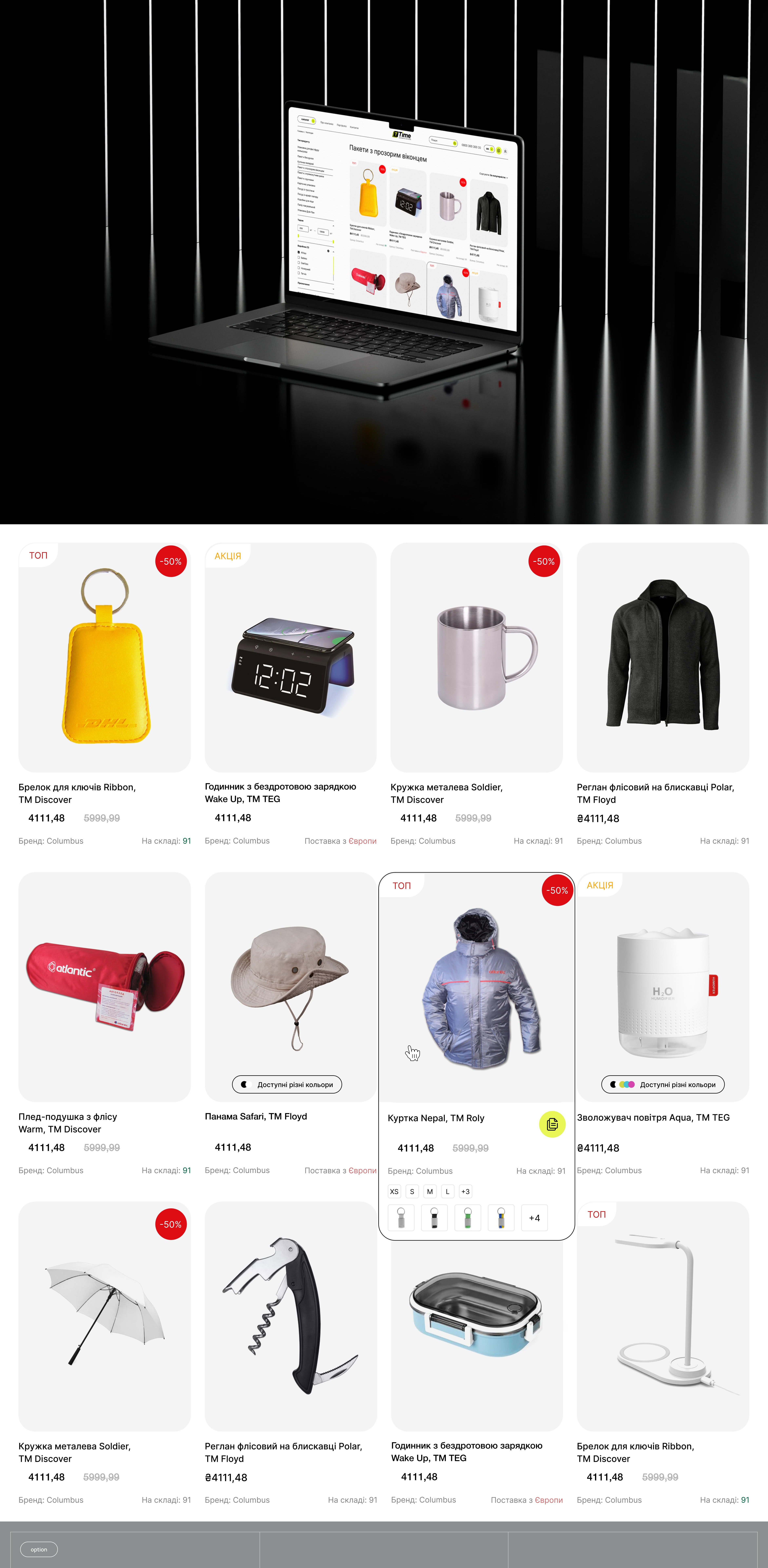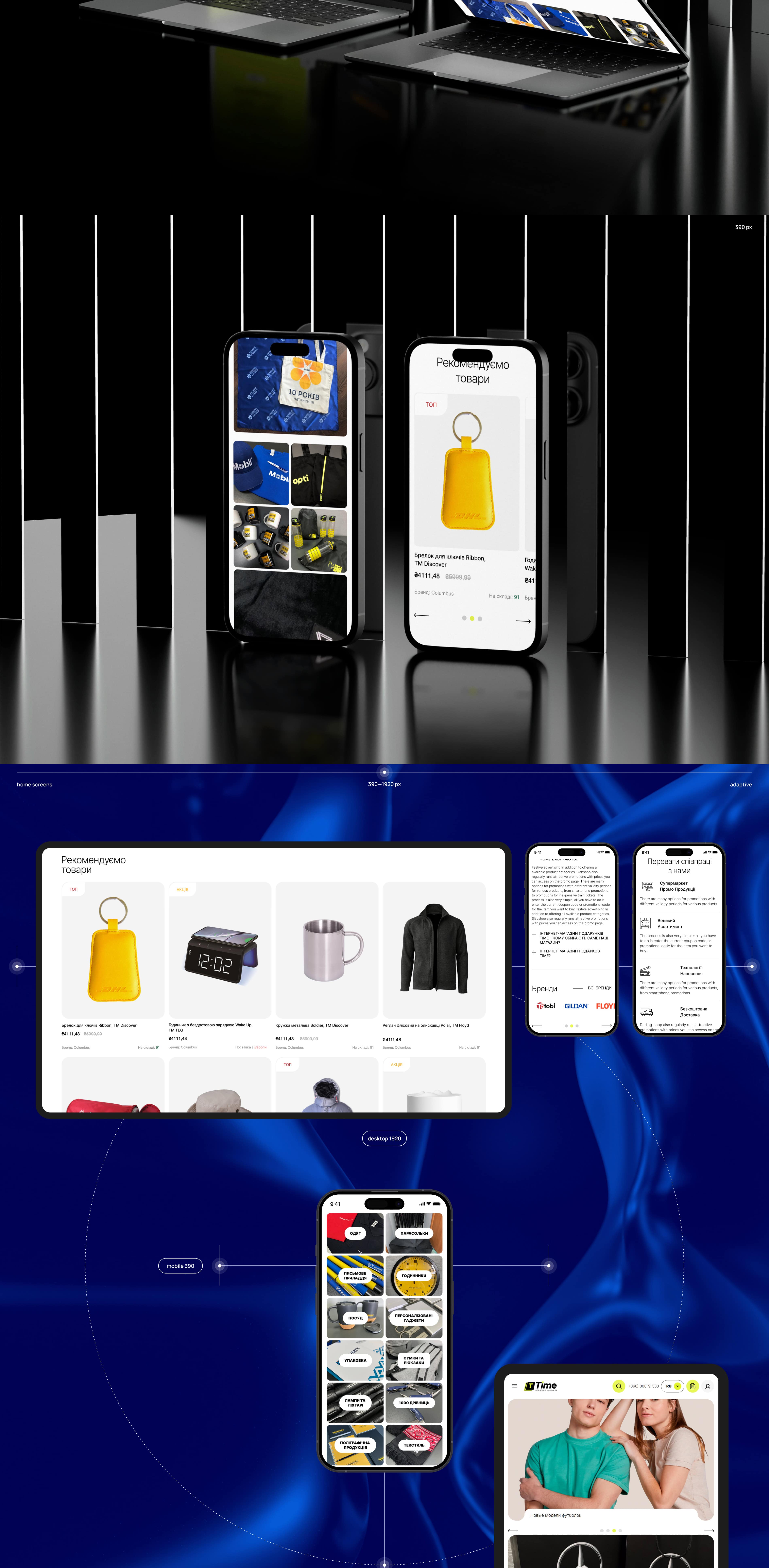 Ми створили сучасний інтернет-магазин для компанії Time, яка спеціалізується на корпоративних подарунках та брендованій продукції. Дизайн орієнтований на зручність, швидкий пошук товарів і презентацію широкого асортименту.